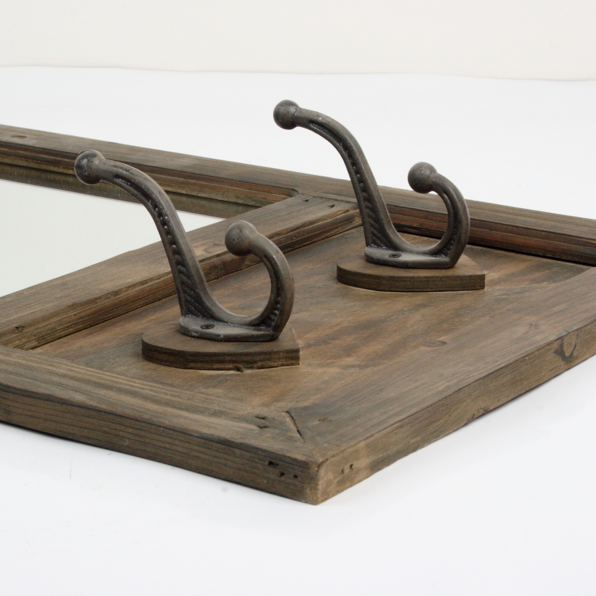 Háčiky v spodnej časti môžete využiť na odkladanie drobností po vstupe do domu, alebo na zavesenie dekorácií. Zrkadlo z tmavého dreva a robustnými háčiky skvele vynikne v interiéri zariadenom v rustikálnom prírodnom štýle. Dekorácie a doplnky s nádychom vidieka vytvárajú útulný domov.