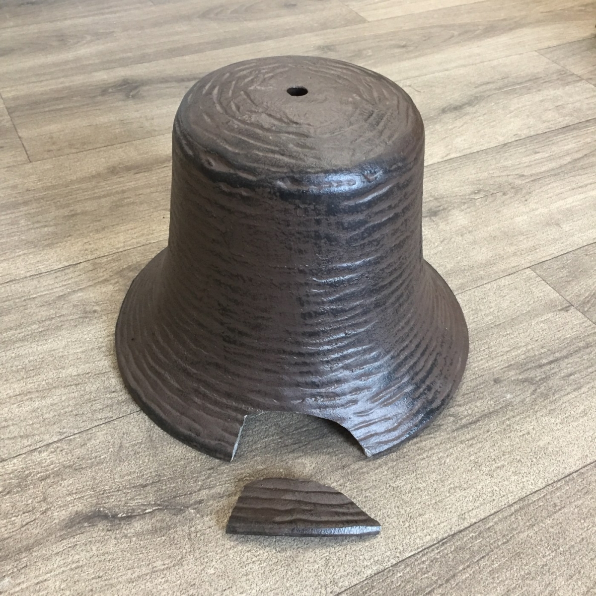 Zvon do zvoničky je vyradený z dôvodu poškodenia/ulomenia časti plášťa zvonu viď foto 3,4,5.