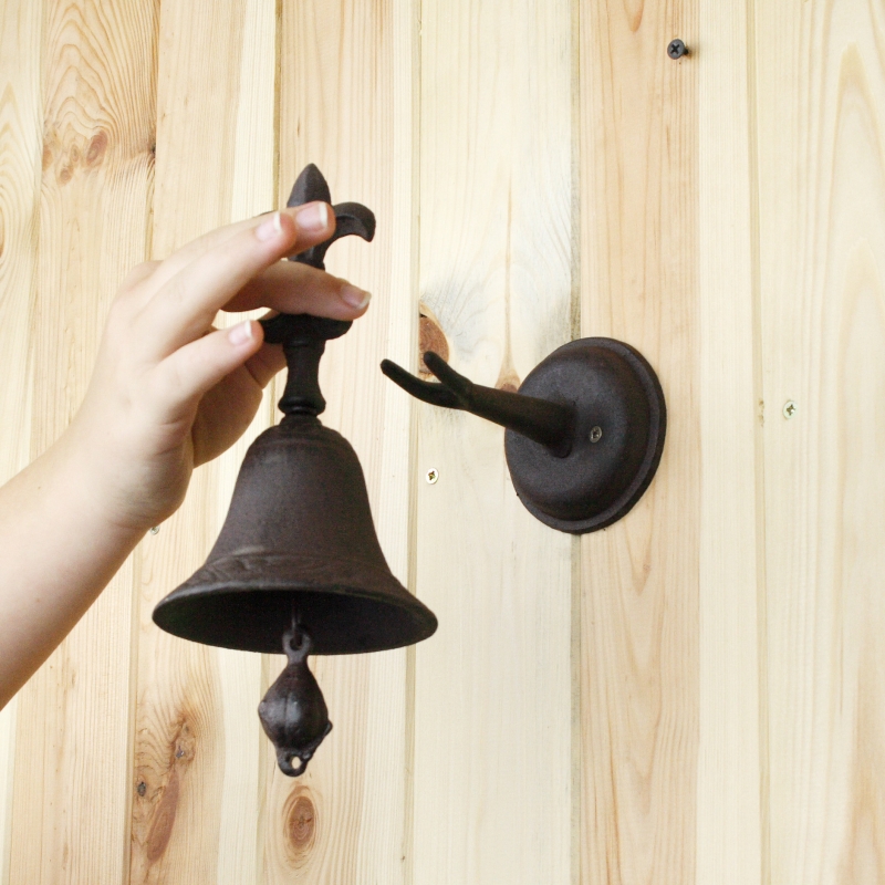 Liatinový zvonček je trošku netradične posadené do liatinového závesu, ktorý je pripevnený za múry pomocou dvoch malých skrutiek.