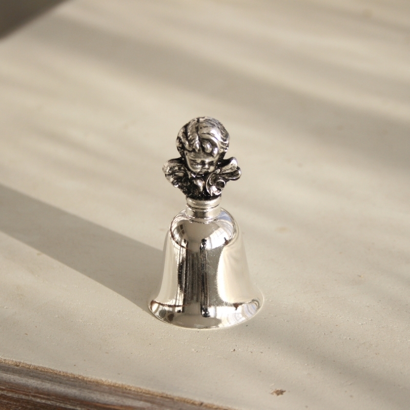 Zvonček s anjelikom postriebrený 5 cm