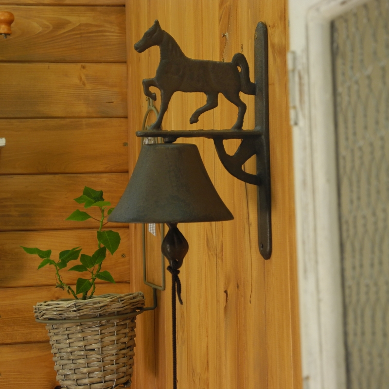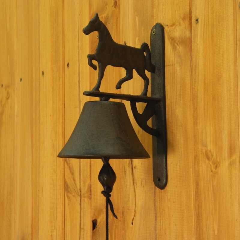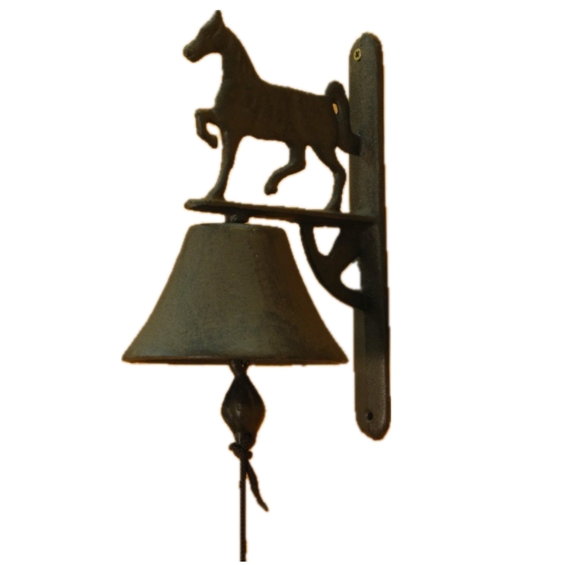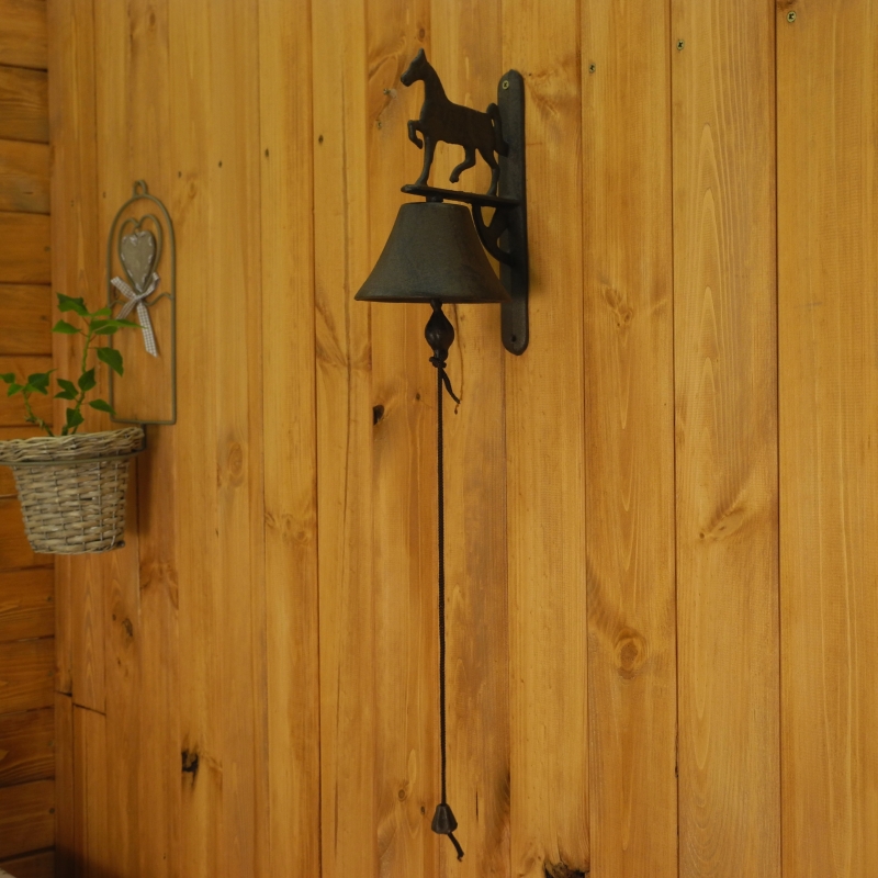 V hornej časti zdobí tento zvonček pekný motív koňa. Liatinový zvuk zvonu určite neprepočujete.